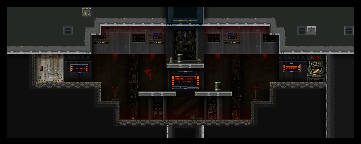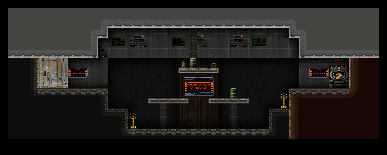 Here is the last room of level 1: The Hangar just before the exit. Here you face off with the first pinkies. Everything still subject to changes.