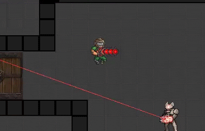 Thinking about translating this into 2D I immediately thought about a hitscan(instant hit) laser gun, much like the metal slug laser, except it would go through enemies.